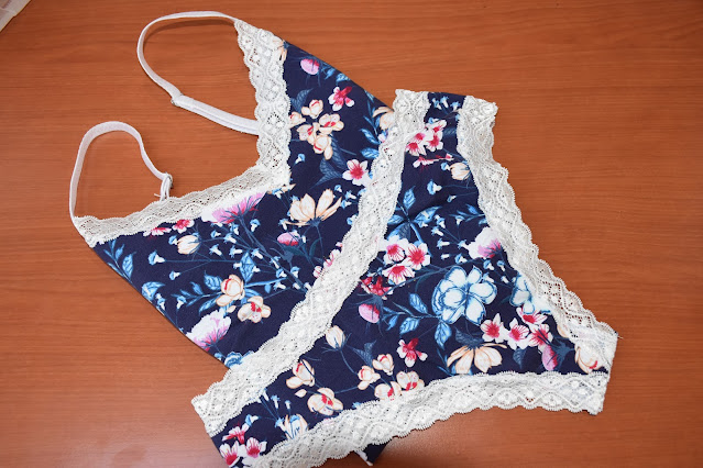 The pattern is designed for cotton jersey and is perfect for small pieces of jersey, I always keep those, and I never could decide what to make with them :) The edges of the briefs and the front edge of the camisole are finished with stretch lace trim and the shoulder bands of the camisole are made with fold-over elastic.